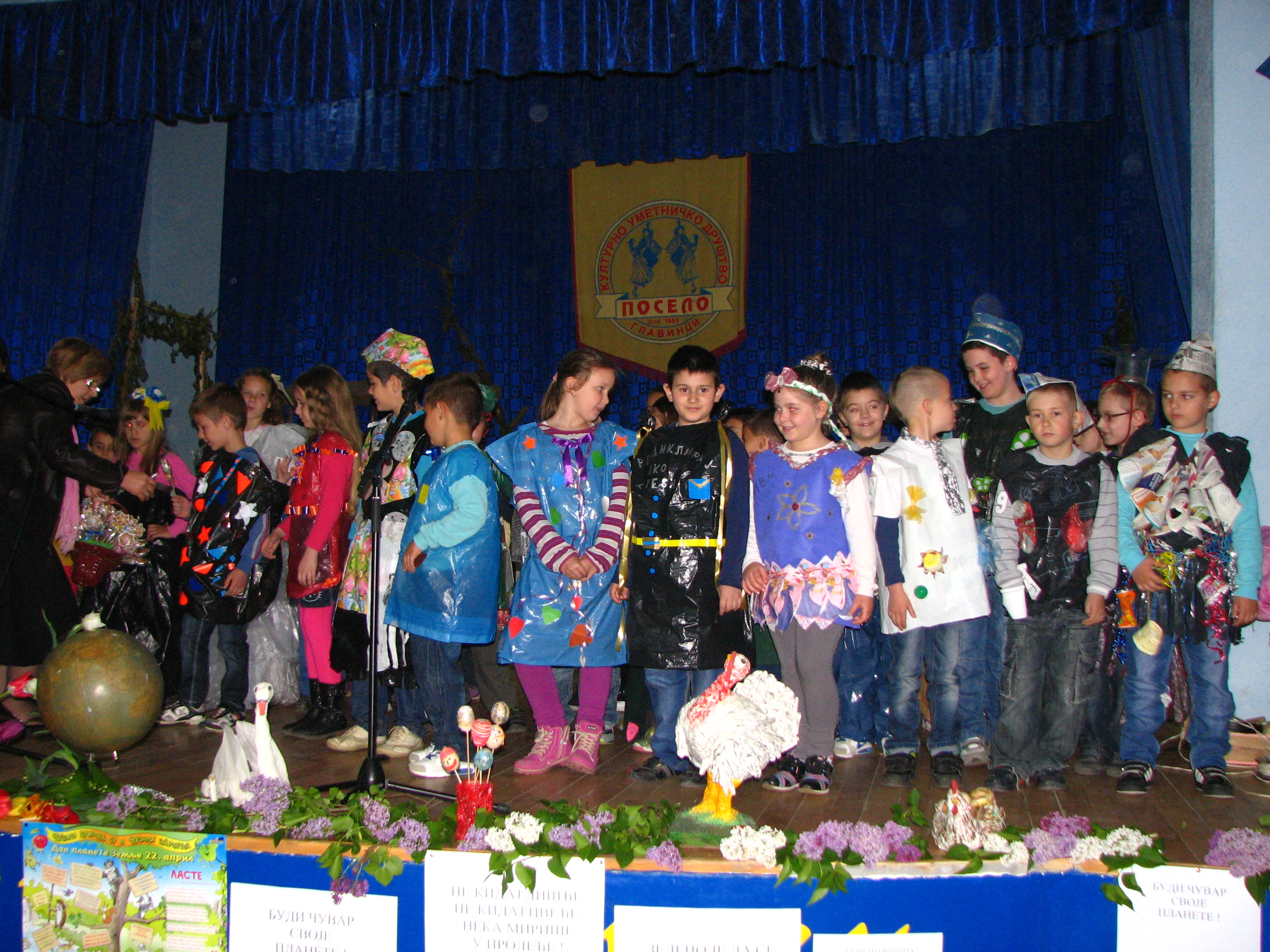 Tom prilikom bili su izloženi različiti predmeti i slike koje su učiteljice i đaci na časovima slobodnih aktivnosti i likovne kulture pravili od materijala za reciklažu godinama unazad. Osim toga, deca su u radionicama, uz pomoć svojih roditelja, izrađivala odevne kostime od materijala za reciklažu. Na kraju programa, u prepunoj sali Doma kulture u Glavincima, održana je modna revija izrađenih kostima.