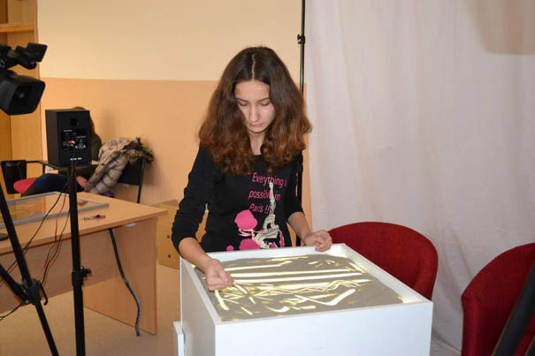 Iako je Marija dokazala da se može dobro zabaviti crtanjem u pesku, malo njenih prijatelja je spremno da nekoliko sati zaborave na svoje računare i posvete se stvaranju umetnosti u tragovima peska, kao što to radi ova dvanaestogodišnja učenica Osnovne škole „Boško Đuričić” iz Jagodine.