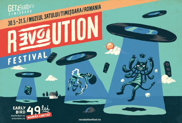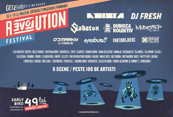 Dvodnevni Revolution festival u Temišvaru održace se u parku Village Museum, u subotu 30. i nedelju 31. maja. Program predvode britanski hitmejker DJ Fresh, holandska bass senzacija Noisia, švedski metal velikani Sabaton, britanski dubstep duo Modestep, brazilski drum’n’bass velemajstor DJ Marky uz MC Staminu, te regionalni velikani Dubioza kolektiv, Eyesburn, Partibrejkers i žestoki rumunski metal sastav Implant For Denial, te još oko 100 izvodaca na šest bina. Pažljivo odabran program uz omiljene bine i zone sa Exita, predstavice nesvakidašnju atmosferu velike Exit Avanture koju cine Exit i Sea Dance festivali! Medutim, to nije sve jer… ?