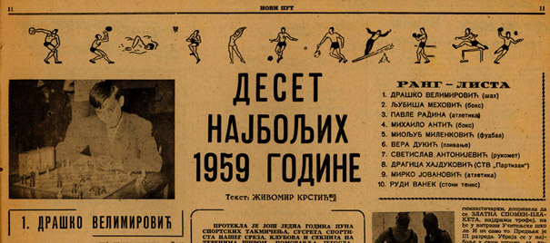 Krajem 1959. godine, u listu „Novi put“ (novogodišnji broj) sačinjena je rang-lista deset najboljih sportista Pomoravlja, Levča i Resave i za najboljeg je promovisan Dragoljub Velimirović, šahista „Morave“.