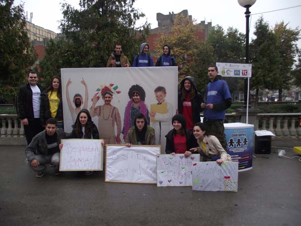 U okviru akcije puštane su pesme na različitim jezicima sa razglasa kako bi se ukazalo na značaj nediskriminacije u društvu. Mladi volonteri privlačili su pažnju prolaznika sa tablom na kojoj je ispisan natpis “BESPLATAN ZAGRLjAJ” u cilju prenošenja poruke građanima da “zagrljaj ne košta ništa, a puno znači”.