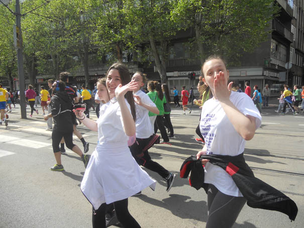 U Beogradu je bio četrdeset i jedan đak ove škole, od kojih su tri četvrtine činile devojčice. Bodreni od direktorke Snežane Tanić, svi su oni trčali u takozvanoj „Trci zadovoljstva“, na stazi dugoj 5 kilometara, ali njihov profesor srpskog jezika se izdvojio učešćem u pravoj-pravcatoj maratonskoj trci mada je upravo „načeo“ 55. godinu života.