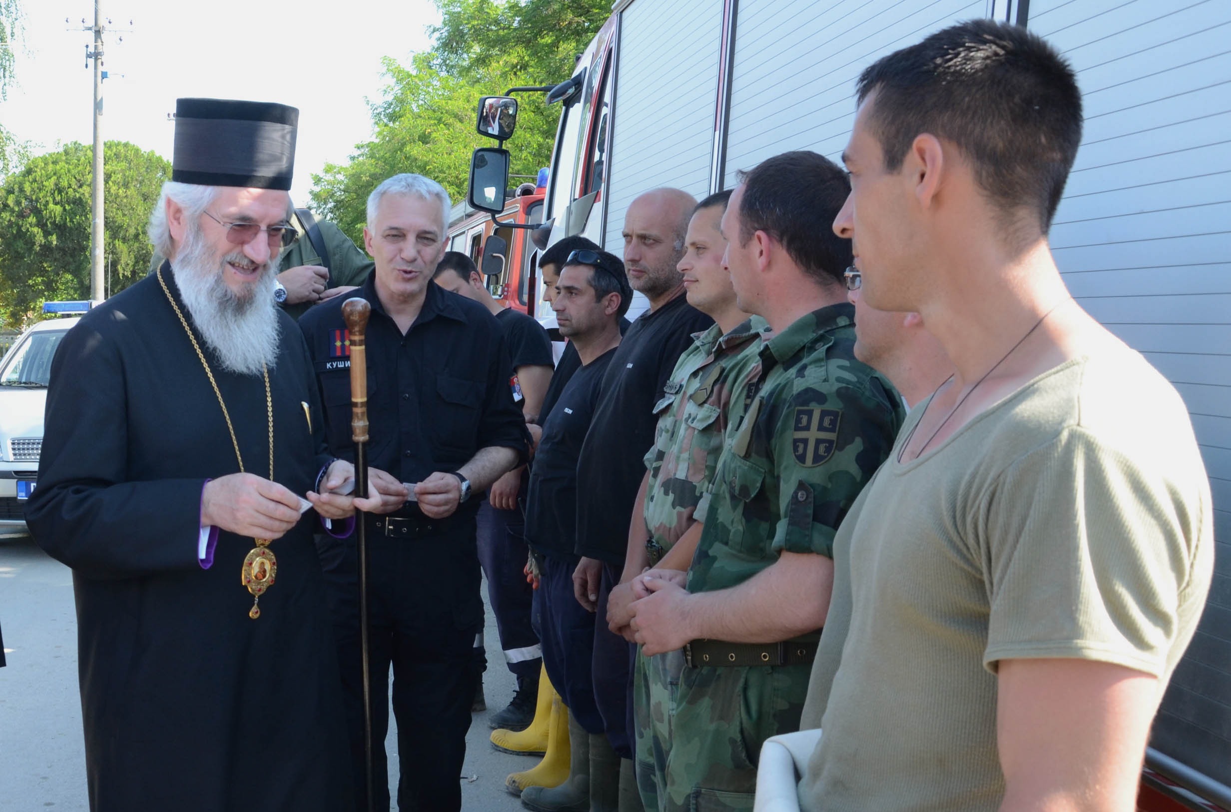 – Narod u ovako teškim trenucima ne treba da klone duhom. Srpska pravoslavna crkva i nadalje će u ovim teškim trenucima za srpski narod, svom svojom snagom pomagati u saniranju posledica poplave”, naglasio je Episkop šumadijski Gospodin Jovan.