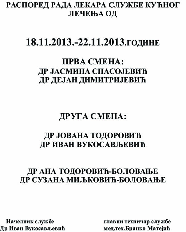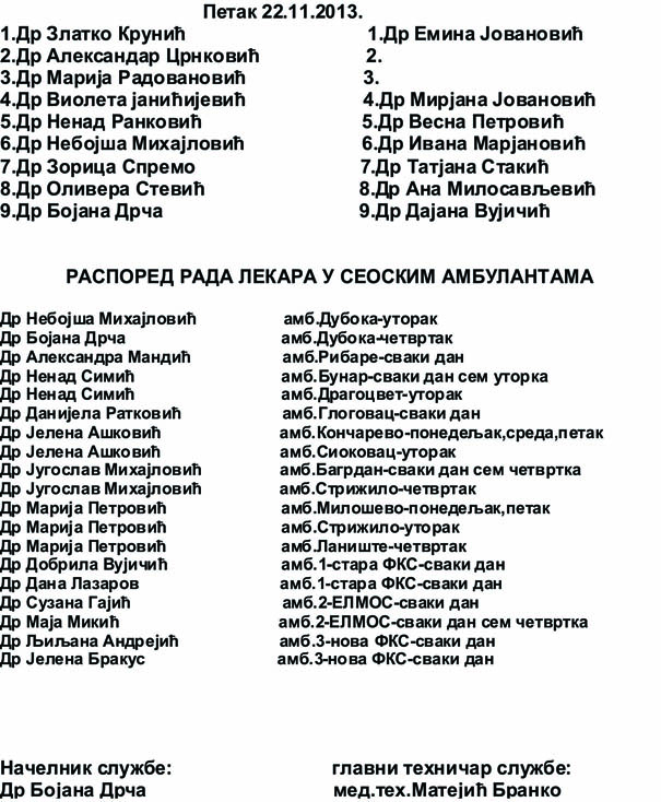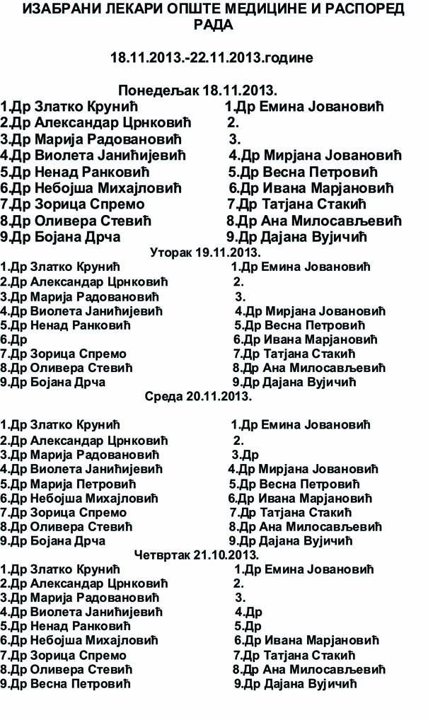 Naslovna // Servisne informacije // Raspored rada lekara opste medicine u Domu zdravlja Jagodina