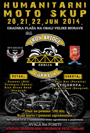U Ćupriji će, kako je najavljeno, na obali Velike Morave, na gradskoj plaži, 20, 21 i 22. juna biti održan Humanitarni moto skup.