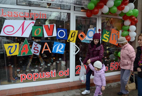 Izlozi prodavnica u centralnim jagodinskim ulicama gotovo u celosti oblepljeni procentima kojima trgovci reklamiraju aktuelnu zimsku rasprodaju.