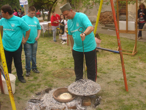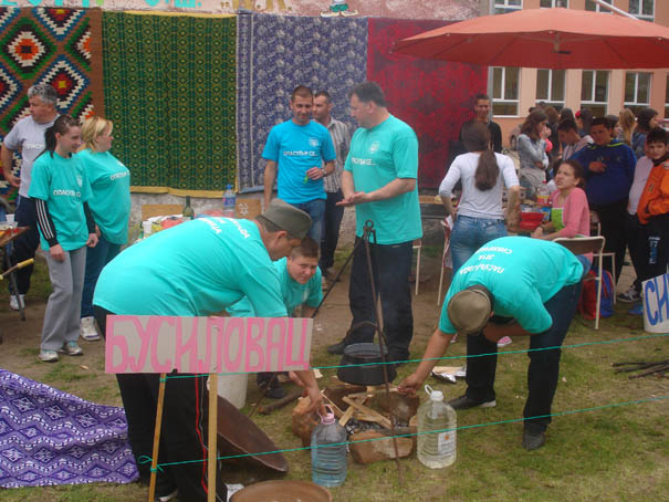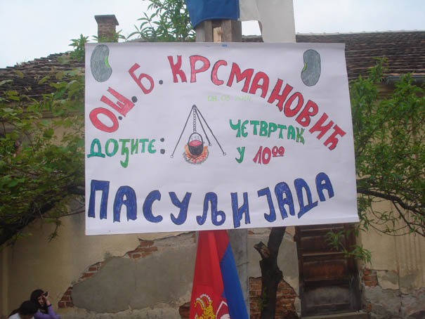 I tako, u prvom kotliću koji, s čunkom, više liči na kazan za rakiju, već se uveliko krčka vreo pasulj. Mreška se i i onaj busilovački, samo što se oni opredeljuju za tradicionalniji stil: samo za tuzlansku so (bez vegete)! Svako ima pravo na svoj stil. Naravno, i na veru u pobedu! Evo, pristižu i novi gosti, tuđoselčani! I njih ljupka Katarina Stojković (III razred) ljubazno poslužuje pogačom i solju. Pardon: i domaćim čvarcima!
