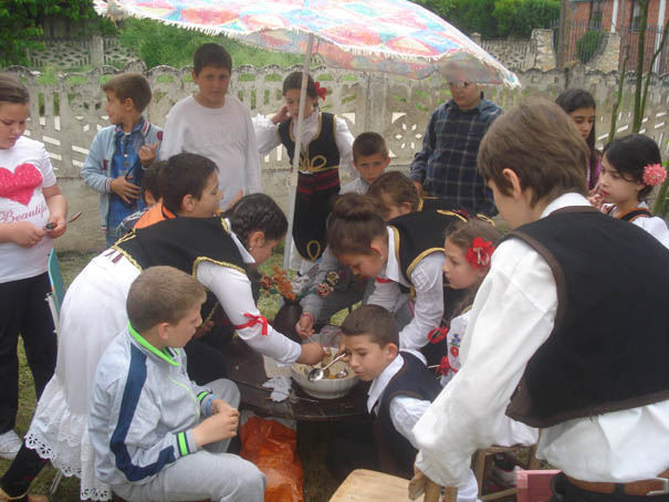 Nemajući strpljenja da sačekaju zvaničnu odluku žirija, đačići u živopisnoj narodnoj nošnji već su za sofrom, u uglu dvorišta. Tiskaju se nad velikom činijom punom ukusnog pasulja!
