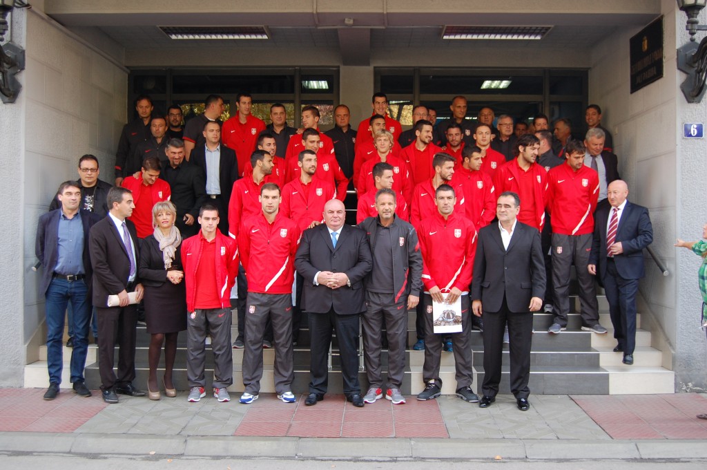 U velikoj Sali Skupštine grada Dragan Marković, kao i svi odbornici, direktori, dočekali su reprezentaciju Srbije.