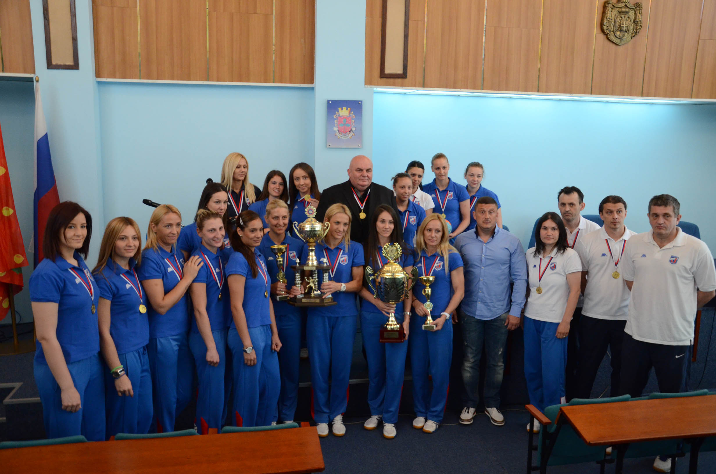 “Biti prvak nije nimalo lako, konkurencija u ženskom rukometu je jaka. Čestitam vam na velikom uspehu i visokom rezultatu, vi ste kao sunce posle kiše ovom gradu, poručio je Dragan Marković Palma rukometašicama Jagodine na prijemu povodom njihovog jučerašnjeg osvajanja Kupa Srbije.