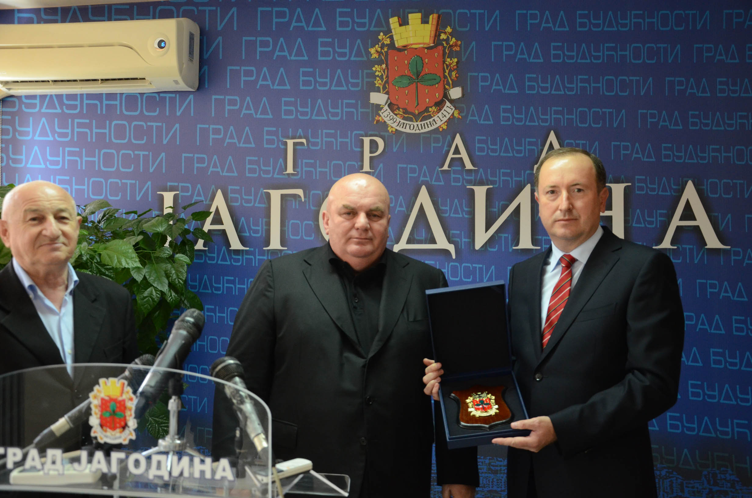 U ime zahvalnosti za ukazanu pomoć, Dragan Marković Palma uručio je Plaketu Skupštine grada Jagodine Mehu Mahmutoviću, gradonačelniku prijateljskog grada Novog Pazara, i pozvao sto studenata iz ovog grada da budu gosti Jagodine tokom letnje sezone