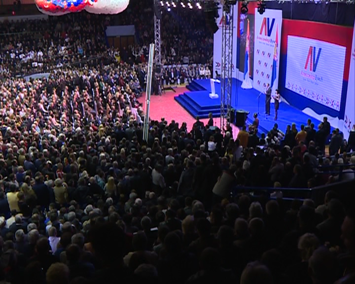 NA MITINGU SRPSKE NAPREDNE STRANKE I KOALICIONIH PARTNERA U JAGODINI PREDSTAVLJEN PREDSEDNIČKI KANDIDAT ALEKSANDAR VUČIĆ