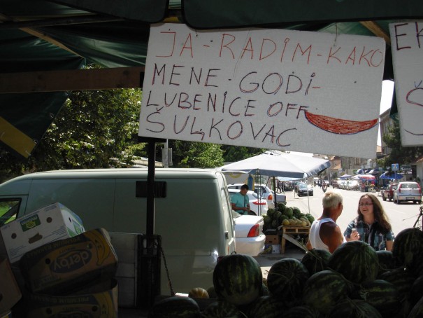 Prodavci na Zelenoj pijaci i prodajnim mestima u njenoj okolini najčešće na svojim proizvodima postave cene voća i povrća. Stanislav Cvejić, prodavac lubenica iz Šuljkovca, našao je drugačiji i najoriginalniji način da privuče svoje mušterije. Jedna od njegovih neobičnih reklama je „slađa od prve ljubavi“.