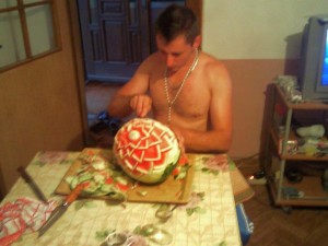 – Moj prijatelj sa fejsbuka Ungi Džej iz Singapura snimio je kako on to radi i poslao mi. Neke smernice dao mi je i Pavel Hrča iz Kisača, a onda sam ja na internetu video sve što me je interesovalo o karvingu, odnosno veštini pravljenja figurica od voća i povrća. Iako mi je nadimak Trovač, gotovo svakodnevno imam posla od aprila do oktobra. Angažuju me i preko zime iako, na primer, lubenice moraju da donose iz inostranstva- dodaje Vladimir.