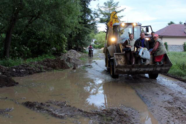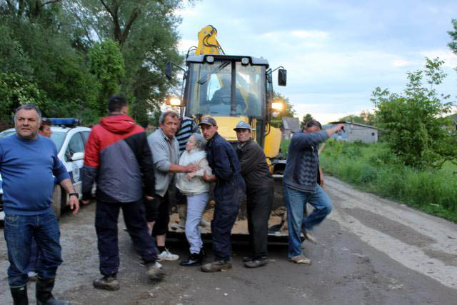 Evakuisani su bagerima, stojeci u viljuškama, a na suvom ih je čekao autobus.