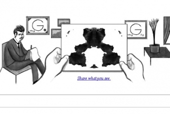 Današnji interaktivni logotip Gugla poziva vas da na svoj način protumačite mrlju od mastila poznatu pod nazivom “Roršahova mrlja” i podelite to s prijateljima. Na ovaj način “dudl” obeležava godišnjicu rođenja slavnog psihijatr Hermana Roršaha.